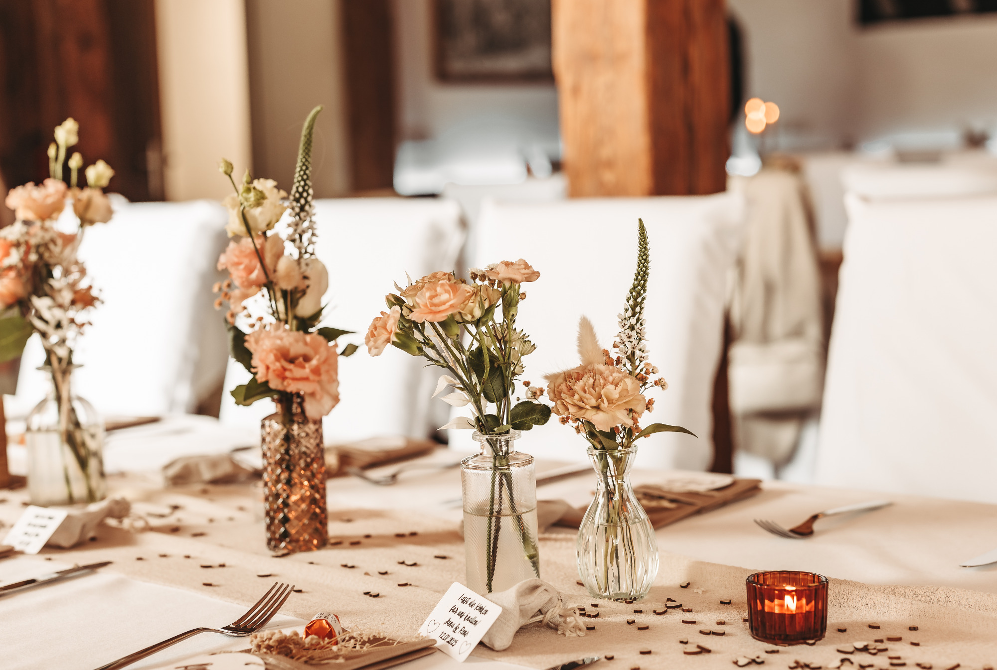 Kreative Gestaltung ist unsere Leidenschaft. Wir bieten ein ständig wachsendes Sortiment an Hochzeitsdekoration, das mit viel Liebe zum Detail individuell an eure Wünsche angepasst werden kann.